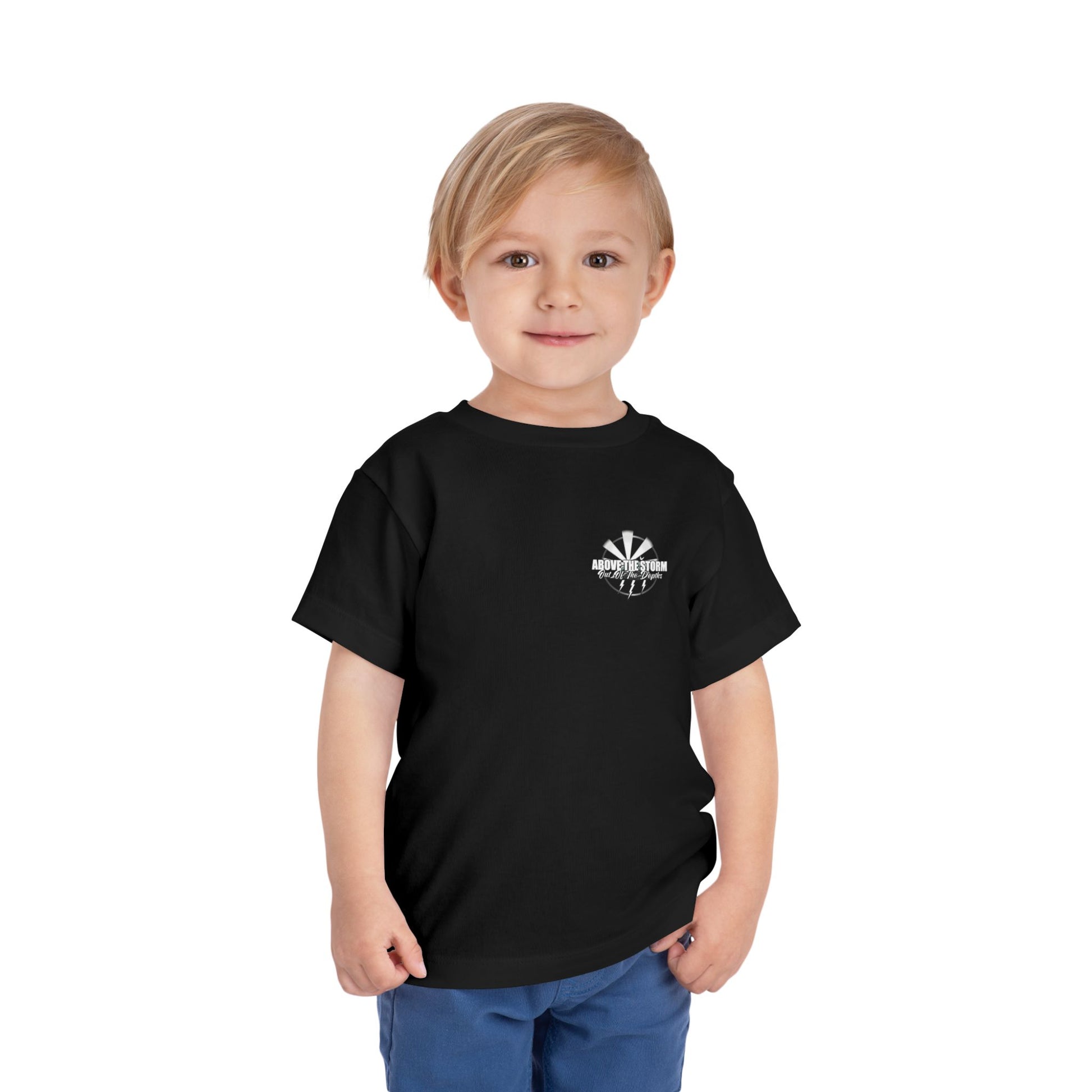 Uplift any child's wardrobe with our classic original piece that let's the brand speak for itself. Tiny but mighty, they deserve to be outfitted in Above The Storm style as well. The toddlers short sleeve tee is a 100% Airlume combed and ring-spun cotton jersey.